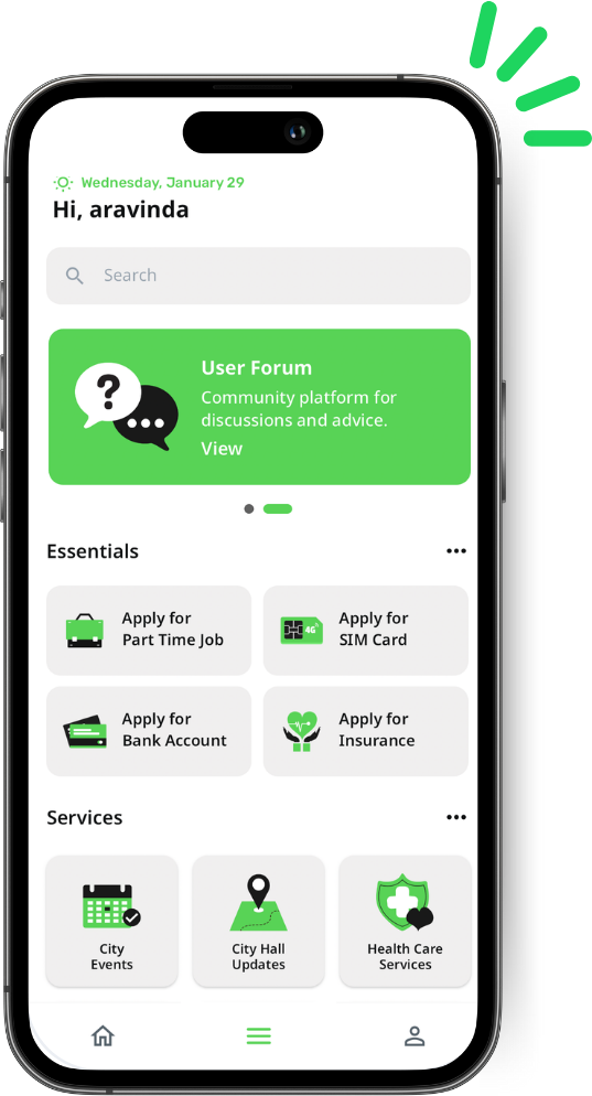 Access SIM cards, bank services, insurance, job opportunities, and more.
